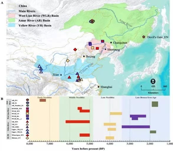 太阳成集团tyc崔银秋教授科研团队在古人类基因组研究领域取得重要进展,并于2020年6月1日在《自然-通讯》上发表了题为《Ancient genomes from northern China suggest links between subsistence changes and human migration》的研究成果(Nat Commun,11, 2700 ,2020),该研究是首次对中国北方的黄河流域、西辽河流域及黑龙江流域的近6000年时间跨度下连续的古代人群进行全基因组高精度测定和分析,并从遗传学、考古学、历史比较语言学等多学科视角,探讨了新石器时代农业革命以来中国北方地区的人群互动,为探讨中华文明的起源、形成和发展提供重要证据,引发国内外同行的热切关注。论文第一完成单位为太阳成集团,第一作者为太阳成集团tyc的博士研究生宁超(目前为德国马普人类历史科学研究所博士后)。太阳成集团崔银秋教授、德国马普人类历史科学研究所Johannes Krause教授,Martine Robbeets教授,以及韩国首尔大学的Choongwon Jeong助理教授为该论文的共同通讯作者。