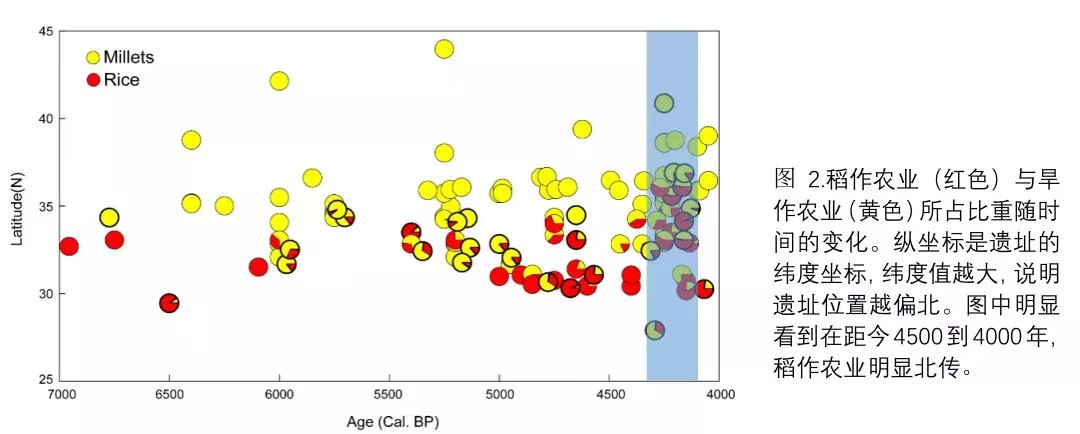 本研究的55个古代样本取自19个考古遗址(7500-1700 BP),涵盖西辽河流域、黄河流域以及黑龙江流域。研究结果显示中国北方不同区域的古代人群有明显的遗传差异,并且区域间、以及区域内部人群间存在持续的基因混合和替换。黑龙江流域的人群自7,500年以来始终保持极高的基因连续性,并且这种基因成分可能在新石器时代早期就出现在中国北方古代人群中(图1、2)。中原地区人群在整体的遗传结构上保持连续性,但自仰韶时期以降,受到中国南方人群的持续性遗传贡献,并最终形成现在的汉族人群。可以说,中原地区人群的主体遗传结构至少在仰韶文化时期就已经奠定,这为中华文明探源提供了重要的遗传学信息。从遗传学角度看,仰韶与龙山人群遗传结构相近,均具有一定比例的中国南方人群基因成分,但后者比前者南方基因成分更高,说明自仰韶时期起,中国南方人群持续迁入黄河流域并与黄河流域人群进行基因上的交流,而这种人群迁徙和混合模式恰与距今4500-4000年长江流域稻作农业显著北传相契合(图3)。自红山文化时期开始,西辽河流域受到向北扩散的仰韶文化人群的遗传贡献,至新石器时代晚期,夏家店下层文化的二道井子人群与仰韶文化人群在遗传结构上无显著差别。从夏家店下层文化到夏家店上层文化,人群生业模式由农业转向农业与畜牧业并存,或与欧亚草原以及黑龙江流域游牧人群的南移有关,从遗传的角度,游牧人群并没有简单地替换夏家店下层文化的农业人群,而是与夏家店下层文化土著人群混合,形成了夏家店上层文化人群特有的遗传结构。