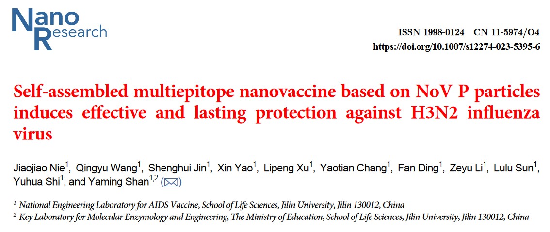 太阳成集团tyc艾滋病疫苗国家工程实验室单亚明教授团队,在通用型流感疫苗研究领域取得新进展。相关研究内容以“Self-assembled multiepitope nanovaccine based on NoV P particles induces effective and lasting protection against H3N2 influenza virus”为题,于2023年2月16日在学术期刊《Nano Research》正式发表。