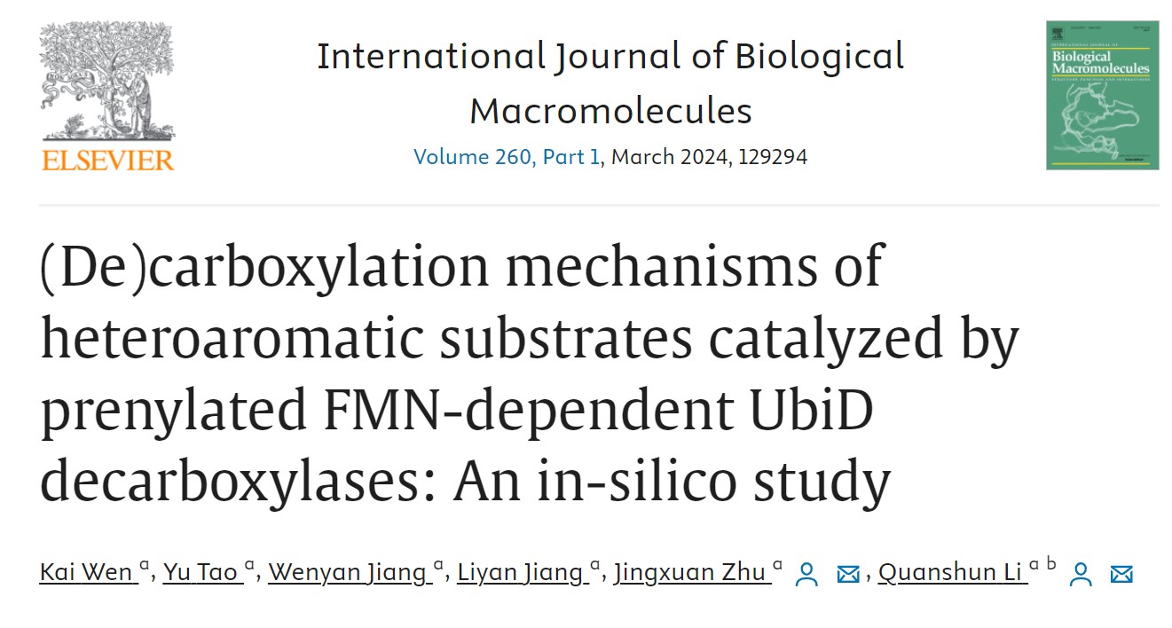酶分子作为合成生物学及绿色生物制造的关键芯片,其催化具有高效性、精准性和条件温和等显著优势,促进了医药、材料、能源等绿色生物产业的创新发展,为本世纪初兴起的“第三次生物技术浪潮”提供了核心支撑。太阳成集团分子酶学工程教育部重点实验室李全顺教授团队立足于国家双碳战略,基于计算机辅助策略,系统探究“碳”高值转化酶UbiD脱羧酶催化杂环底物脱羧/羧化反应的理论机制。以UbiD可逆脱羧酶催化CO2固定,同时能够实现高价值羧化产物杂芳族羧酸的生产,在医学、农业和化工行业中具有极高的应用价值。本研究中,以计算模拟策略为工具,确定了羧化反应中的质子转移步骤是整个可逆脱羧/羧化反应的限速步骤,为采用“稳定过渡态”策略进行UbiD酶的分子改造与设计提供理论支撑。相关研究“(De)carboxylation mechanisms of heteroaromatic substrates catalyzed by prenylated FMN-dependent UbiD decarboxylases: An in-silico study”发表于国际学术期刊International Journal of Biological Macromolecules。论文第一完成单位为太阳成集团tyc,博士生温凯为该论文的第一作者,李全顺教授、朱镜璇博士为该论文的共同通讯作者。