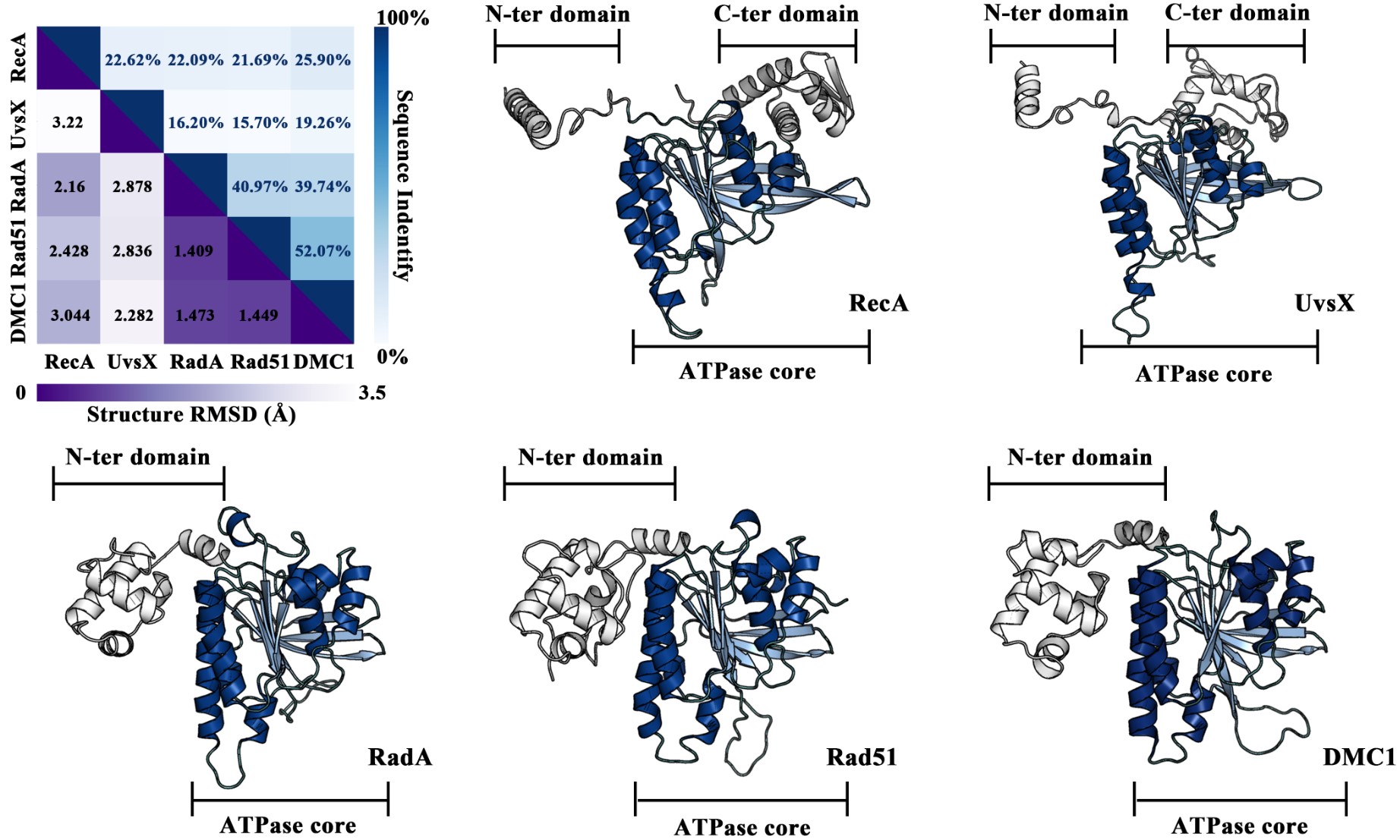 图1:五种重组酶的序列与结构对比