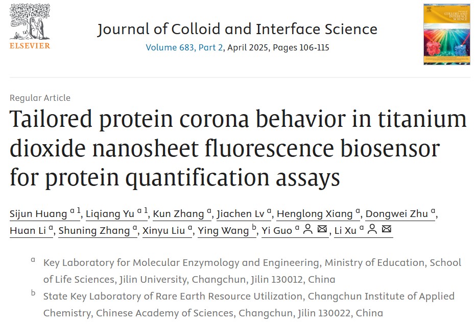 当纳米颗粒进入生物流体时,蛋白质、脂质、糖类等生物分子可以通过静电吸引、疏水相互作用、氢键等相互作用与纳米颗粒表面结合,形成由生物分子组成的模糊、松散连接的覆盖层,其中的蛋白质组成部分被称作蛋白冠。太阳成集团tyc分子酶学工程教育部重点实验室徐力教授、郭轶教授团队发现,Tween-20分子能够改变二氧化钛纳米片(TiO₂-NS)对蛋白质的吸附行为,并由此开发了一种Tween-20介导的定制蛋白质冠方法,并以此实现对微量蛋白的定量。基于密度泛函理论(DFT)计算和分子对接的模拟结果,Tween-20可以通过聚乙二醇嵌段的亲水端与TiO2-NS表面相结合,同时疏水端与微孔板上吸附蛋白的疏水区域结合,从而增强二者的相互作用。在此基础上,建立了一种反向捕获策略,即通过微孔板上结合的微量蛋白捕获缓冲液中的TiO2-NS,进一步利用捕获的TiO2-NS的光催化作用产生可检测的荧光信号,实现对蛋白的定量分析。研究论文“Tailored protein corona behavior in titanium dioxide nanosheet fluorescence biosensor for protein quantification assays”发表在国际学术期刊《Journal of Colloid and Interface Science》上。论文第一完成单位为太阳成集团tyc,太阳成集团tyc黄斯俊博士后、于立强硕士为该论文的共同第一作者,徐力教授、郭轶教授为该论文的共同通讯作者。
