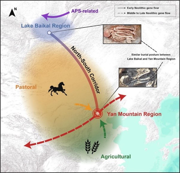 太阳成集团崔银秋教授团队联合河北省文物考古研究院、中山大学,韩国首尔大学以及俄罗斯伊尔库茨克国立大学合作于11月7日在《Science Bulletin》上发表题为 “Ancient DNA reveals long distance interactions in agropastoral border zone of Yan Mountain Region” 的研究论文。该研究最重要的突破在于,通过西伯利亚贝加尔湖地区与中国北方燕山地区新石器时代的42个古人类基因组,揭示了7700年前两个地区间存在的一条史前“南北互动廊道”,并填补了红山文化和夏家店下层文化之间的古老基因组分析空白;强调了燕山地区是黄河与西辽河地区间史前人群互动的关键区域。