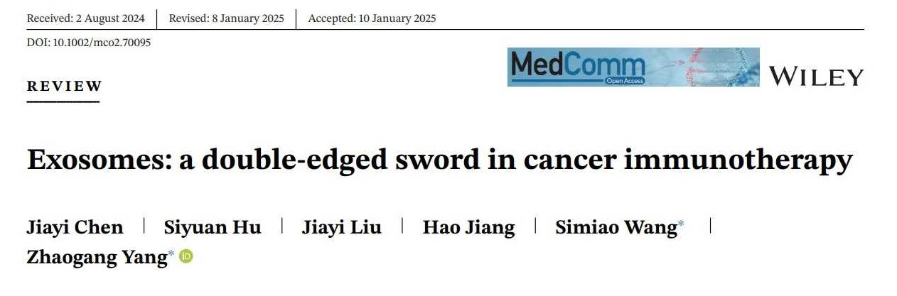 此外,团队还及时对该领域的研究动态进行了系统性梳理与展望,围绕“外泌体在癌症免疫治疗中的应用”及“巨噬细胞在肿瘤免疫治疗中的作用”两大前沿方向分别发表综述论文。相关成果分别发表于国际知名期刊《Medcomm》(生科院博士生陈嘉怡为第一作者,杨照罡教授为通讯作者)与《Asian Journal of Pharmaceutical Science》(生科院博士生王思邈、硕士生刘佳溢、博士生崔雅欣为共同第一作者,顾景凯教授与杨照罡教授为共同通讯作者)。
