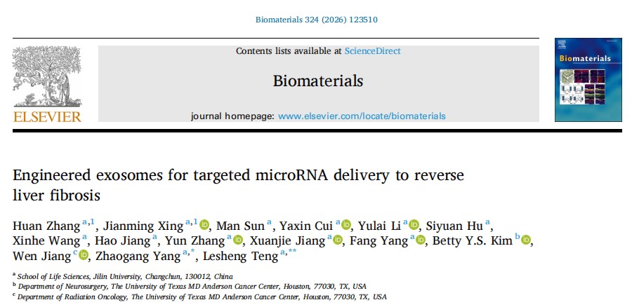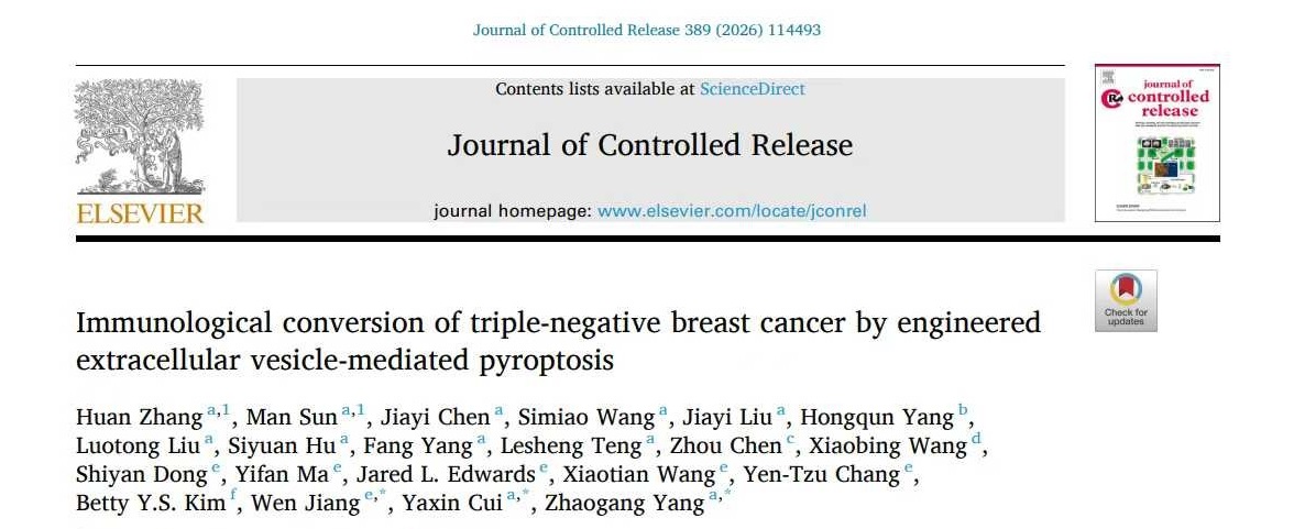 太阳成集团tyc杨照罡教授(国家级青年人才海外项目获得者)团队通过自主研发的新型电穿孔技术,成功破解了外泌体产量低、载药难等核心难题,并以此为基础构建了多类型工程化外泌体递药系统,在非小细胞肺癌、三阴性乳腺癌、胰腺癌及肝纤维化等多种疾病的临床前研究中表现出显著的治疗潜力。2025年,团队发表了多项相关研究成果。