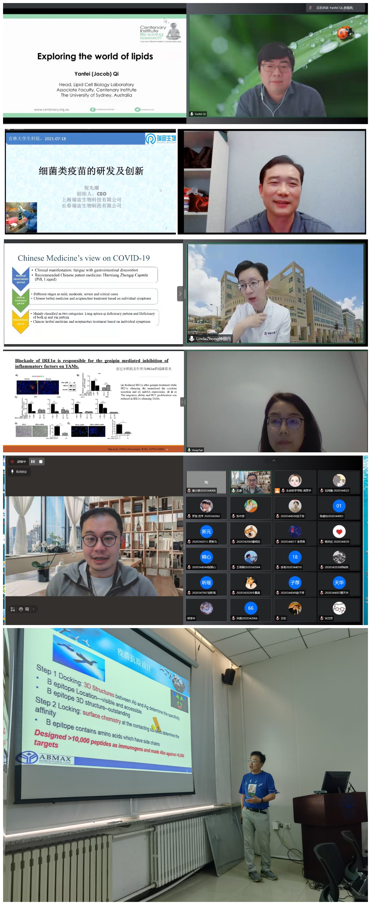 “系列讲座”面向国际学术前沿,围绕生命科学领域重点科学问题,旨在提升员工科研创新能力和国际对话水平,并加强公司国际学术交流与合作。讲座嘉宾既有来自高校的杰出学者(香港大学王宁博士、香港浸会大学钟丽丹博士、Tan Hor-Yue博士、悉尼大学齐延飞博士),也有来自企业界的生物学专家(瑞宙生物科技有限公司创始人祝天潮博士、京天成生物技术有限公司总裁孙乐博士)。讲座迄今已举办6场,内容包括“肝病和肝癌中髓源抑制性细胞的调控研究”、“中医药治疗新冠肺炎的智慧”、“巨噬细胞在肿瘤微环境中的调节作用”、“脂质世界的探索”、“细菌类疫苗的研发和创新”、“新冠病毒突变与疫苗研发”。