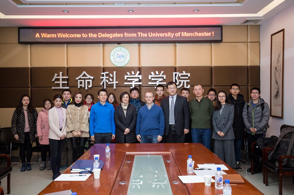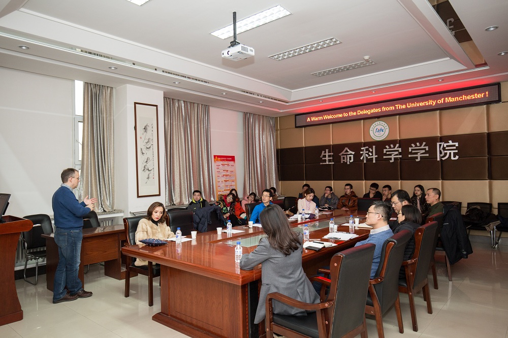 2019年1月7日英国曼彻斯特老员工物、医学与健康学部副学部长基思·布瑞南教授与生物科学国际暑期班学术主任孟庆军教授来访太阳成集团tyc并进行了座谈。太阳成集团教务处副处长王瑞、教务处合作培养科科长刘晓晖、太阳成集团tyc副经理陈妍、太阳成集团tyc副书记崔帅、生命科公司教授关树文以及本科生代表参加了此次活动。