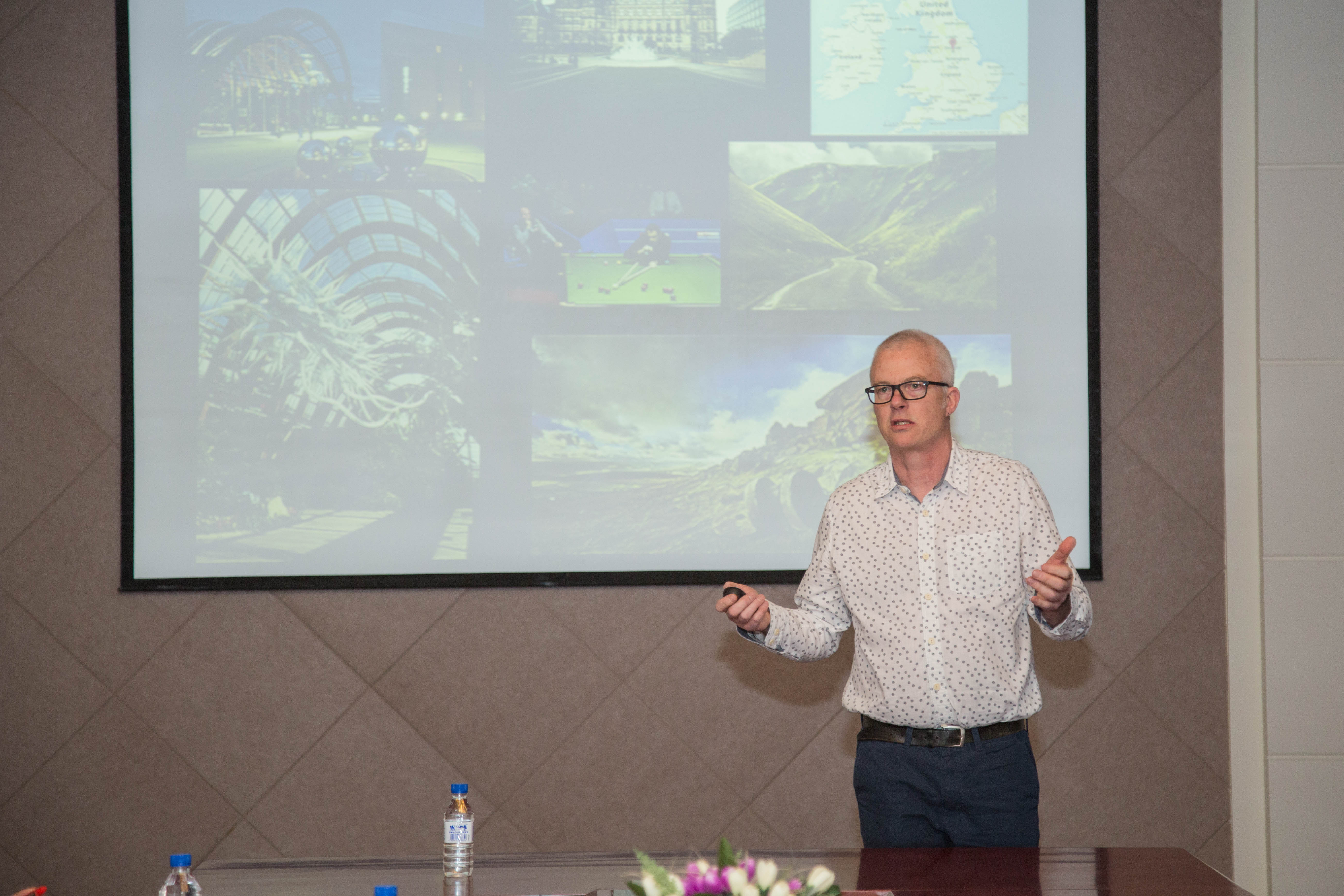 副经理马俊锋首先代表公司欢迎谢菲尔德大学代表团的来访,感谢谢菲尔德大学理学部一直以来对公司的关注,表示愿与对方建立实质性的合作。接下来理学部研究和创新主任、分子微生物学教授西蒙·福斯特为公司师生做了两个学术讲座,题目分别为: “Stapylococcus aureus: A super bug!”和 “Bacterial cell wall architecture and dynamics”,并与在场师生进行了互动交流。讲座结束后,双方对各自的科研与教学情况进行了介绍,并对学术研究、员工交流等问题进行了讨论。此次来访是双方合作的良好开端,为今后深层次交流打下了良好基础,有利于进一步提高公司国际化水平。