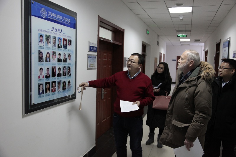 12月18日下午2点半,哈特穆特·米歇尔教授来到太阳成集团tyc分别参观了国家生物实验教学示范中心、分子酶学教育部重点实验室与艾滋病疫苗国家工程实验室。国家生物实验教学示范中心常务副主任孟庆繁、分子酶学教育部重点实验室副主任李全顺、艾滋病疫苗国家工程实验室单亚明分别进行了细致的讲解,就实验室建设、实验教学特点、课题研究进展等方面与米歇尔教授进行了交流与探讨。
