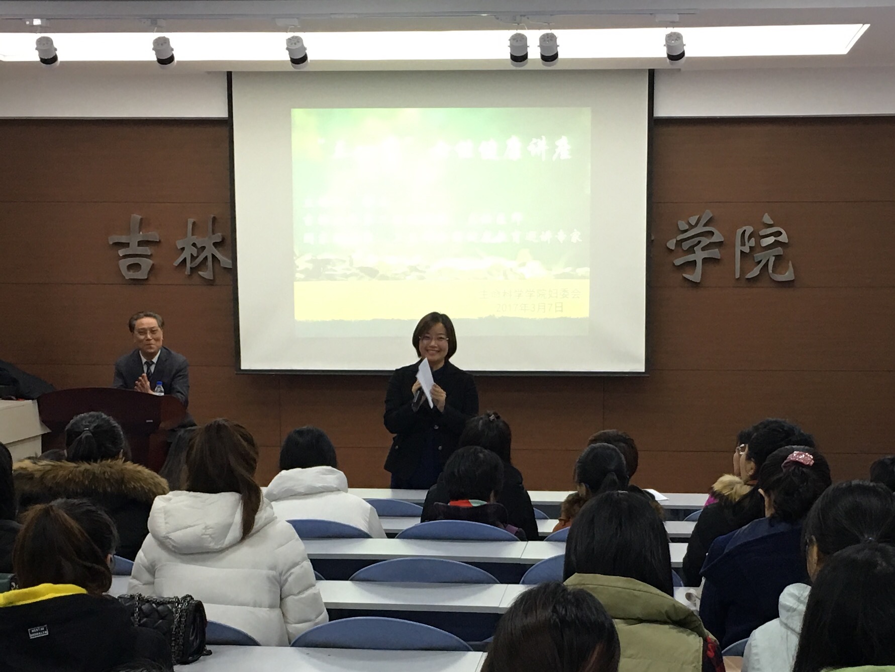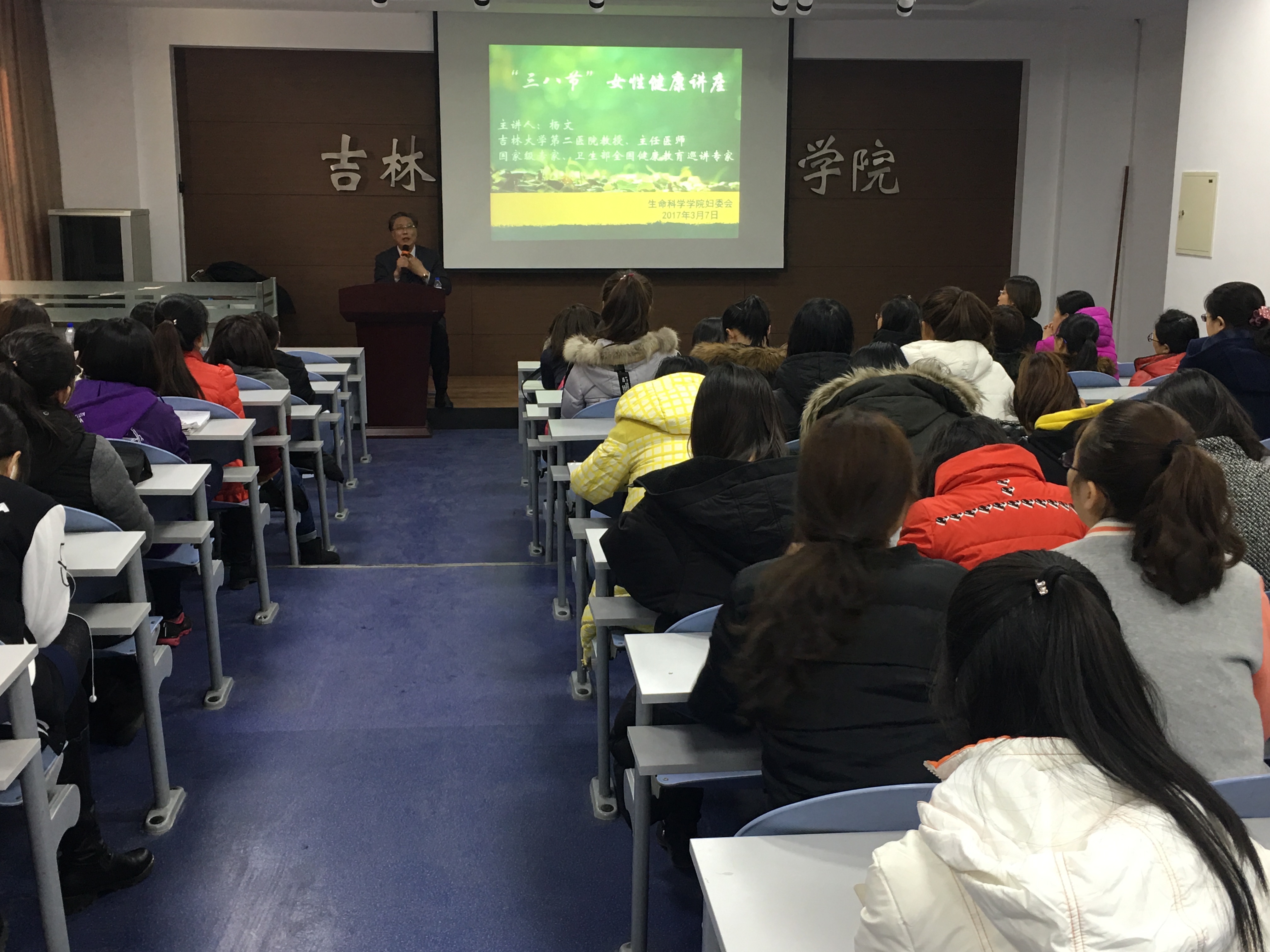 为关爱公司女性师生的身心健康,增强女性的健康意识和自我保健能力,并帮助大家养成良好的生活方式,“三八”国际妇女节到来之际,2017年3月7日下午一点半,在太阳成集团tyc107教室,太阳成集团tyc妇委会特邀太阳成集团第二医院杨文教授为公司女性师生做了一场专业而生动的女性健康专题讲座,得到了参会师生的广泛称赞。本次讲座由妇委会主任刘丽慧主持。