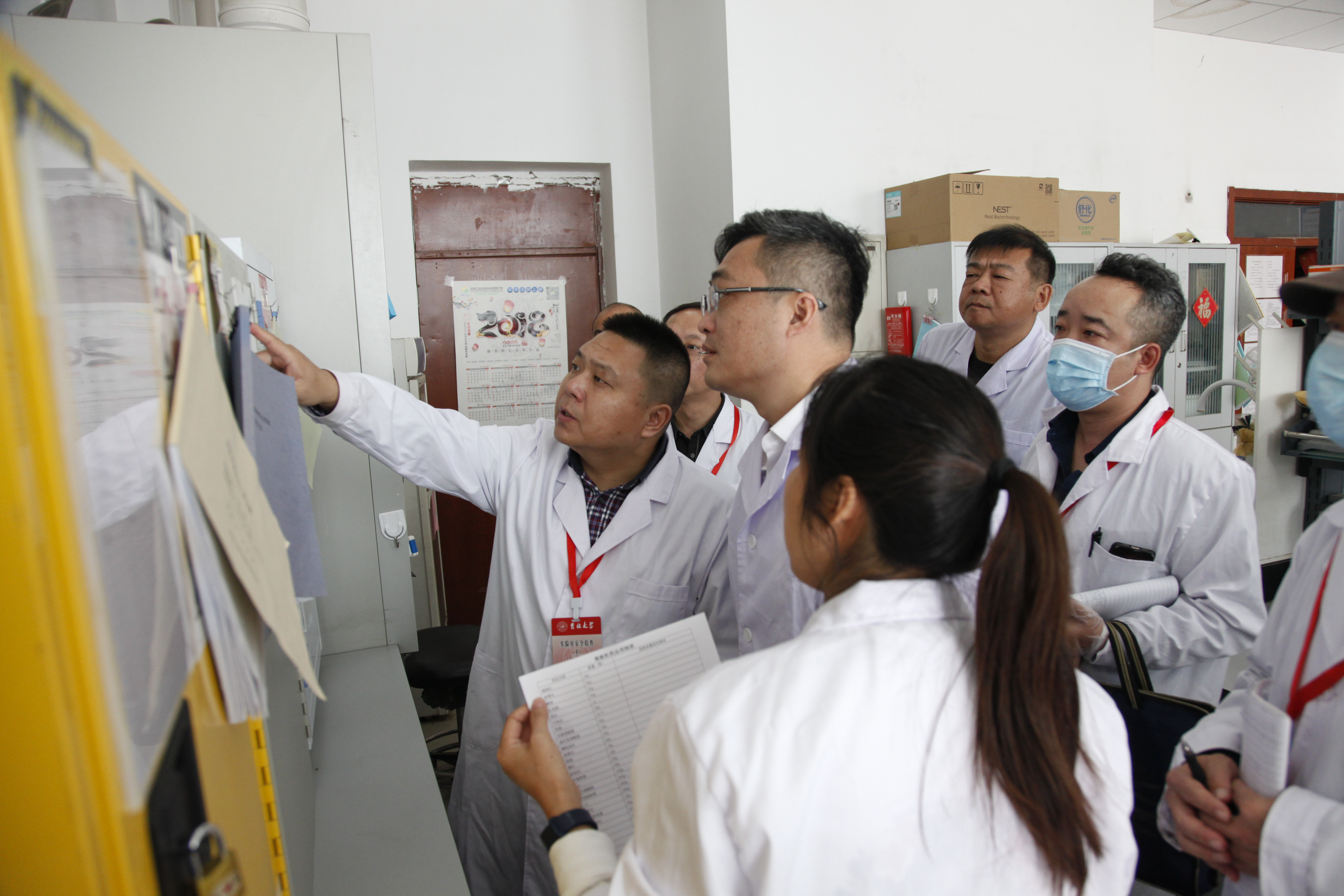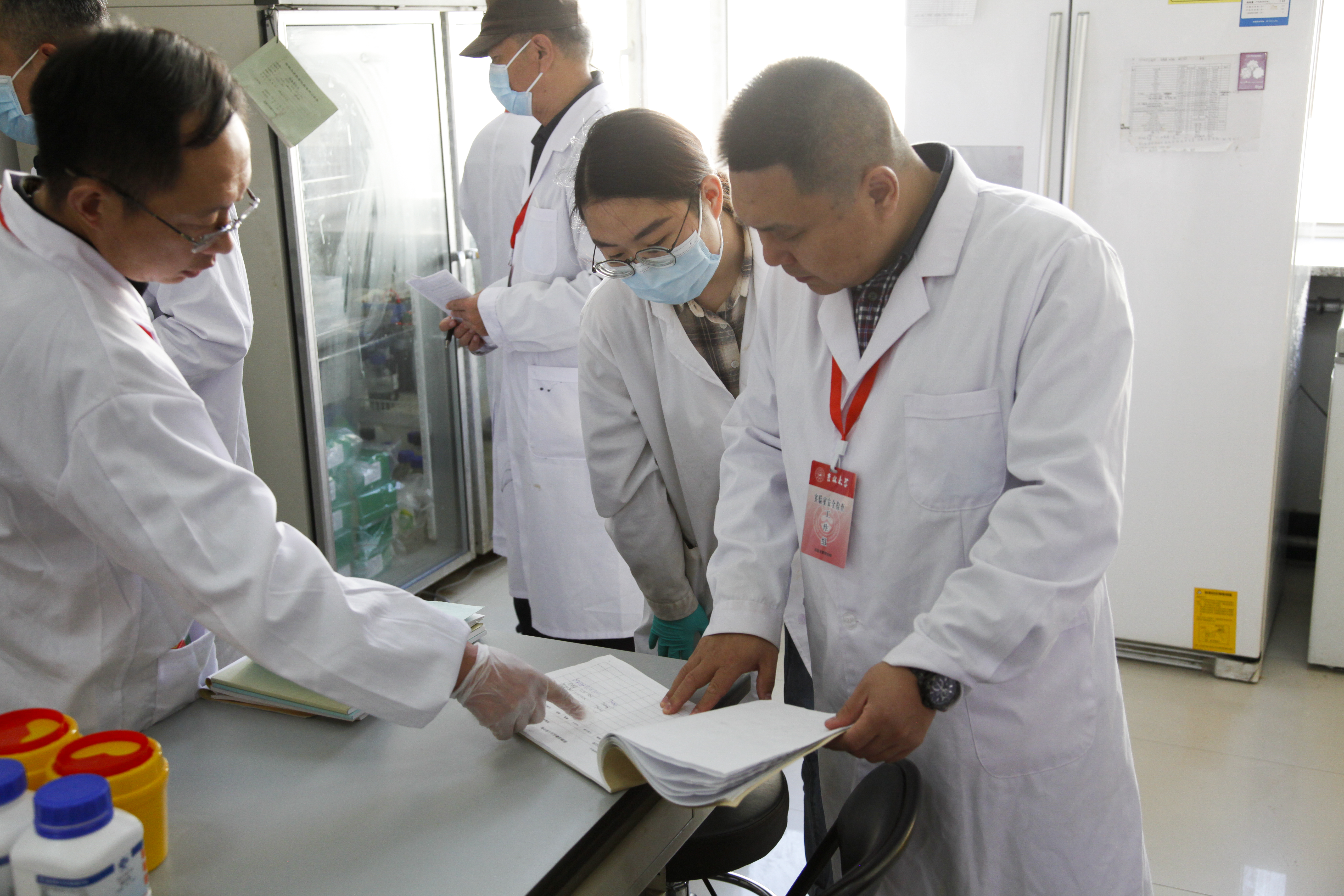 专家组重点对实验室化学品是否规范存放、化学品储存柜动态清单、使用记录台账更新记录情况、实验室是否存在生物垃圾与生活垃圾混放情况、仪器操作是否规范、气瓶合格证与标签是否完整等情况进行逐一检查。