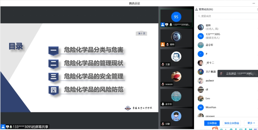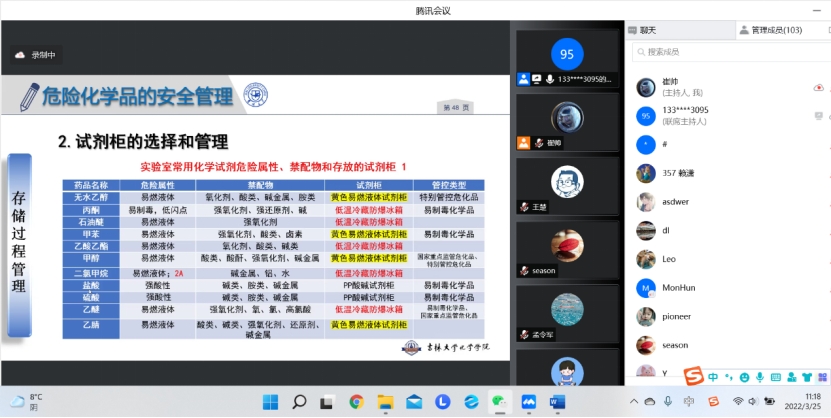 为认真学习贯彻习近平总书记在3月17日中共中央政治局常委会上的重要讲话精神,全面落实孙春兰副总理来校调研时的指示精神,贯彻落实教育部党组和吉林省委省政府、长春市委市政府决策部署,结合当前疫情形势,公司按照公司疫情防控工作总体要求,进一步加强实验室安全教育引导工作,有针对性的强化公司师生危化品存放管理能力,进一步加强特殊时期公司实验室安全管理,持续加强对师生的线上安全教育培训。