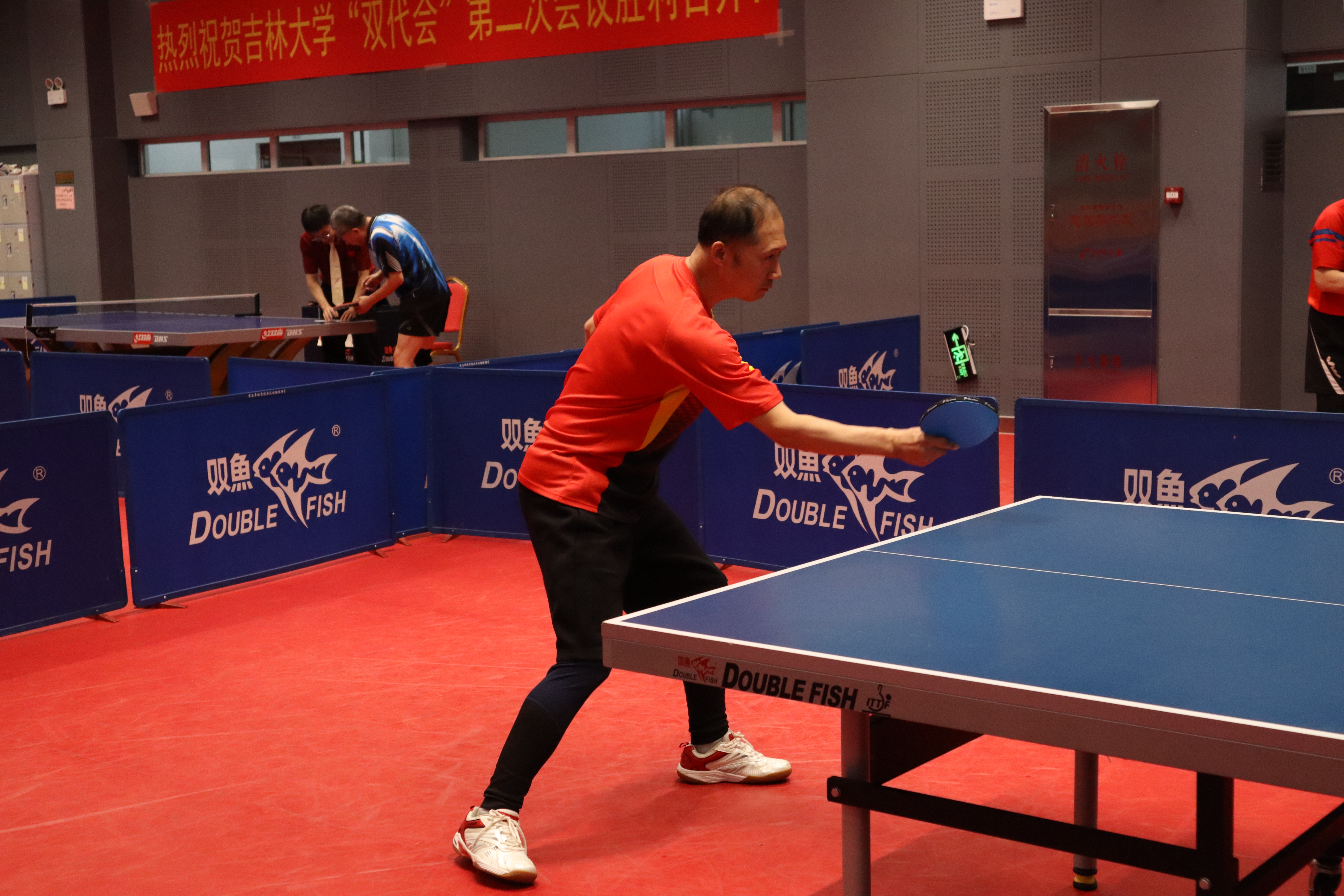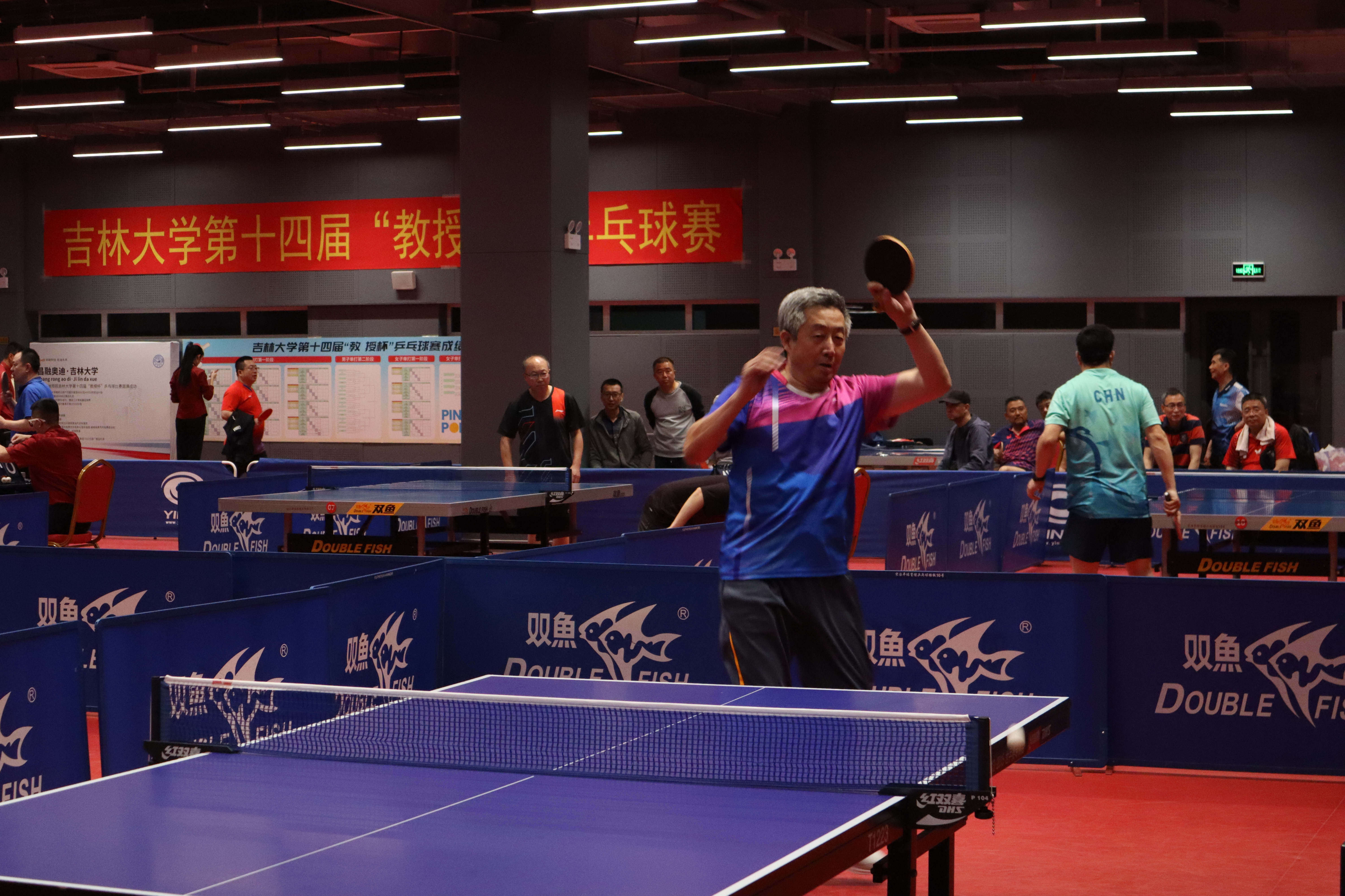 5月11-12日,在校工会主办、教职工乒乓球协会承办的第十四届“教授杯”乒乓球赛场上,公司教师施维、吴永革、高波和孟令军斗志昂扬,技艺高超,每一次精彩的扣杀、巧妙的旋转球都赢得了现场观众的阵阵喝彩,展现卓越风采。