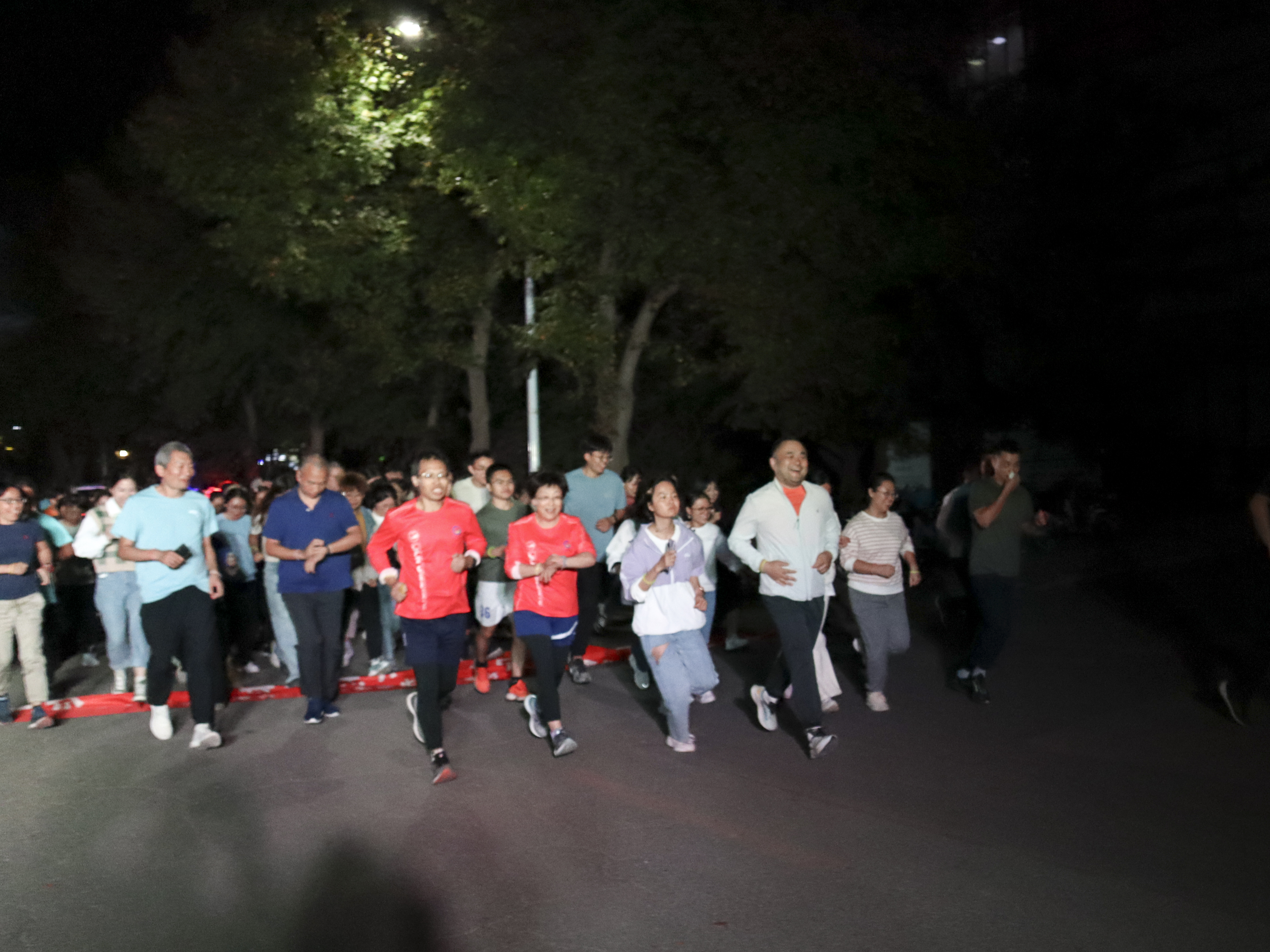 晚7点整,邵俊涛在起跑线后不远的位置举起发令枪,手扣扳机,砰!——随着发令枪响,200余名老师同学们在荧光照耀和欢呼声中冲出起点出发,依次经过唐敖庆楼、鼎新楼、宋治平体育馆、敬信教学楼、王湘浩楼、东荣大厦、五月花广场等校内地标,全程设5个打卡点,共5.0公里。在夜色和荧光的交织中,老师同学们佩戴荧光手环在赛道上奔跑,他们用荧光点亮青春,用激情追逐梦想,在慢跑中欣赏校园之美,享受运动乐趣。
