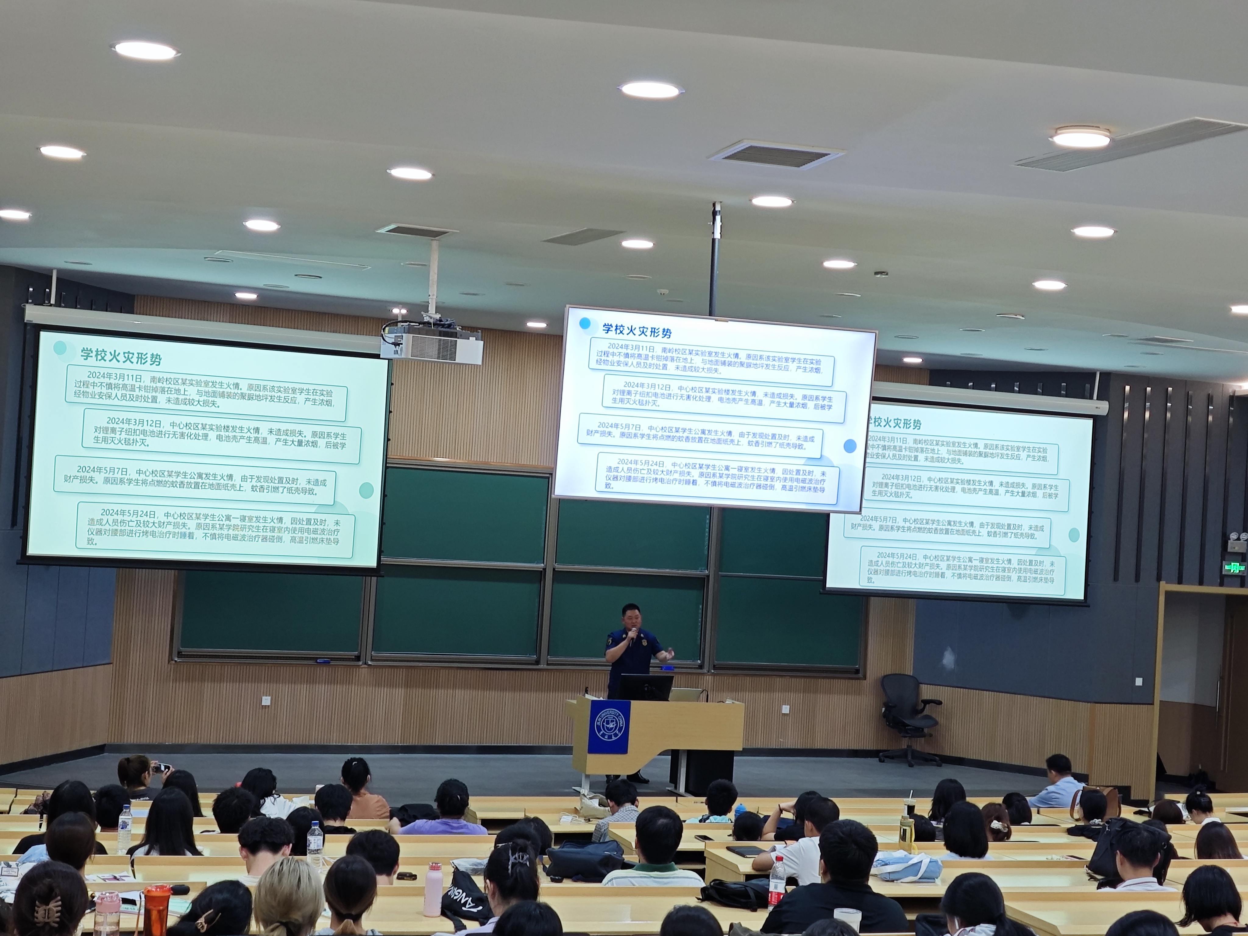 整个讲座过程中,同学们全神贯注,认真听讲,积极参与互动。通过本次讲座为2024级研究生新生们敲响了消防安全的警钟,在今后的学习和生活中,研究生新生们将时刻牢记消防安全,共同营造一个安全、和谐的校园环境。