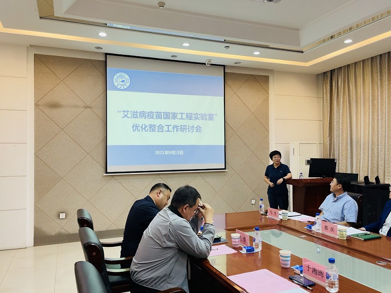 于湘晖经理汇报了艾滋病疫苗国家工程实验室的基本情况,“艾滋病疫苗国家工程实验室”建设至今,承担各类科研课题100余项,实验室主持研制的复合型艾滋病相关研究为我国艾滋病疫苗及其他疫苗的研究积攒了宝贵经验,具有重要指导意义。目前艾滋病疫苗国家工程实验室正在向国家工程研究中心重组及优化,于湘晖向大家介绍了第二批开展优化整合工作的国家工程研究中心和国家工程实验室名单,对此次参评的四家同行进行了详细分析,并针对实验室概况结合目前完成情况进行汇报。中心以支撑国家战略任务为主,主要攻克核心关键技术,助力推动产业持续发展。工程中心的优化整合将整合公司其他公司的优秀实验室资源,完善疫苗设计与构建、递送系统与佐剂、生产工艺、动物模型和临床研究五个阶段,使优化后中心实力增强、定位具有特色。最后于湘晖汇报了中心整合的根据计划时间推进表的现有完成情况,并提出了存在的问题,希望能借助公司力量,系统推进中心优化整合。