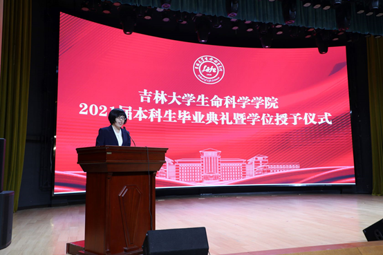 最后由于湘晖经理讲话,于经理代表公司向圆满完成学业、即将踏入人生新征程的全体本科毕业生表示祝贺。在临别之际,她叮嘱同学们要做到以下四点:一是在时代的背景下明确人生目标,将个人的成长成才融入于国内学科发展对于人才的迫切需求之中,融入于国家富强、民族复兴的发展进程之中。二是在生科血脉的赓续中传承科学精神,秉持追求真理、勇攀高峰的科学精神,勇于创新、严谨求实的学术风气,在科学前沿孜孜求索、不断、突破。三是在纷繁复杂中守住善的灵魂,用善良理解自己,尊重他人。四是在躬身践行中踩下“实”的脚印,做人要“实”,做事要“实”,做学问也要“实”。希望同学们走上社会、走上岗位后,要有理想情怀,肩负好实现个人价值和服务国家建设的双重责任,矢志追求更有高度、更有境界、更有品位的人生。