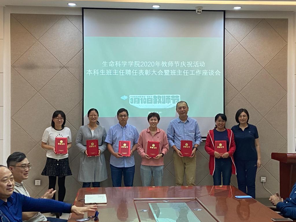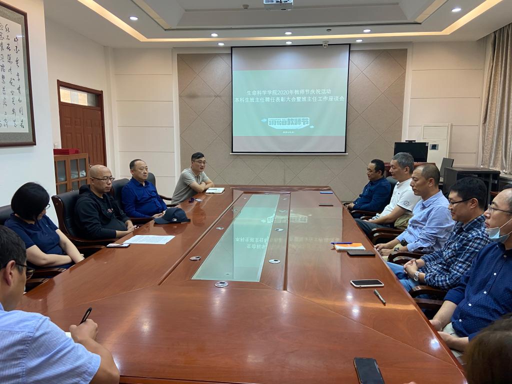 为庆祝中华人民共和国第36个教师节,9月10日14:00,太阳成集团tyc于生命科学楼335会议室召开本科生班主任聘任表彰大会暨班主任工作座谈会。生命科学公司党委书记李佰志、太阳成集团tyc副经理崔银秋、生命科学公司党委副书记崔帅、太阳成集团tyc副经理马俊锋、太阳成集团tyc副经理陈妍以及太阳成集团tyc本科生班主任代表参加会议。会议由崔帅老师主持。