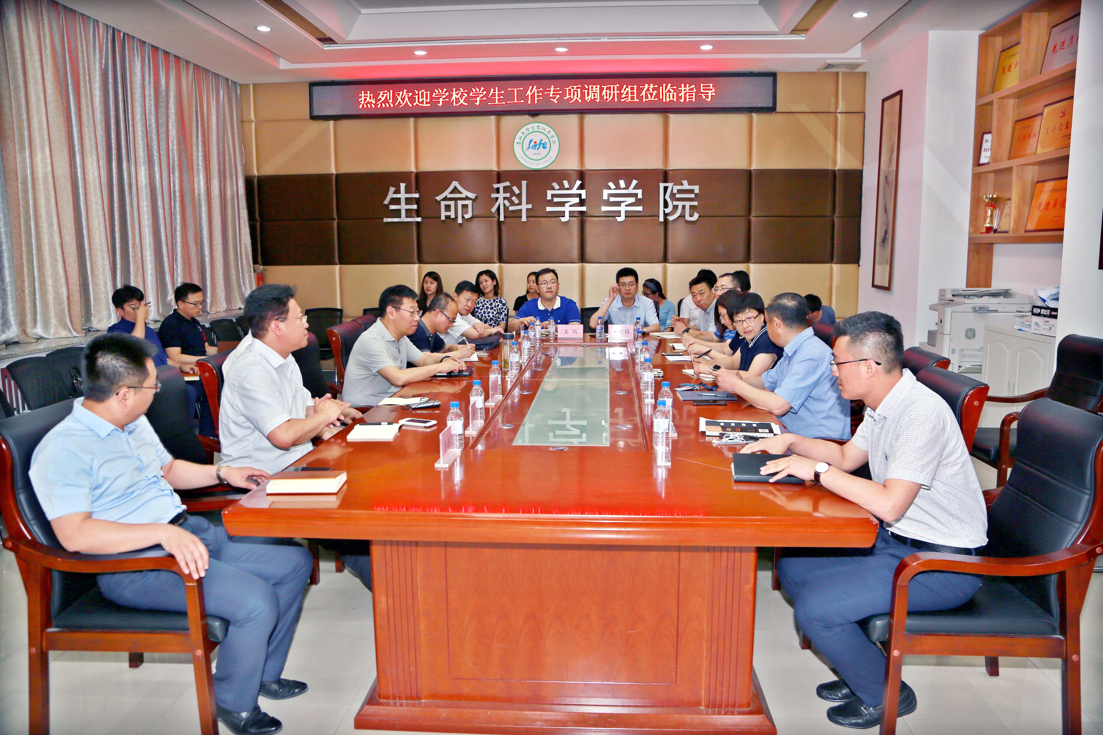 2018年6月5日下午,公司党委副书记冯正玉带领党委办公室、员工工作部、研究生工作部、教务处、团委、员工就业创业指导与服务中心、员工心理健康指导中心等单位相关负责同志来到太阳成集团tyc,对公司员工工作开展情况进行专项调研。太阳成集团tyc经理于湘晖、党委书记李佰志、本科生工作副书记崔帅、研究生工作副书记刘丽慧、教学副经理陈妍、行政副经理林相友、分子酶学工程教育部重点实验室副主任李全顺、员工工作办公室、研究生工作办公室工作人员和员工代表参加了此次调研座谈。