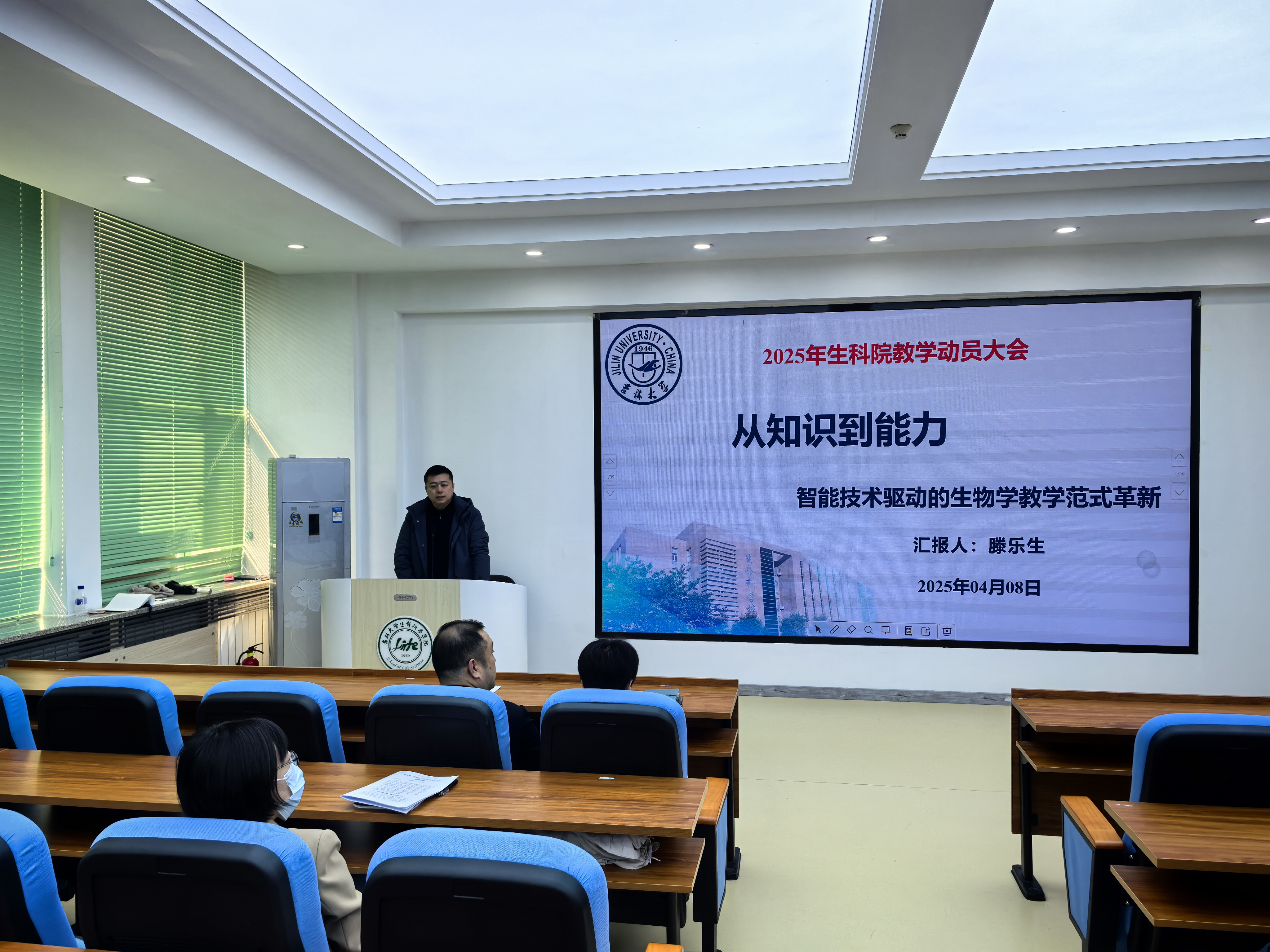根据公司教学工作总体部署,按照公司党委学习教育实施方案中关于全面落实坚持开门教育,深入基层开展调研的相关要求,2025年4月8日,太阳成集团tyc召开主题为“从知识到能力,智能技术驱动的生物学教学范式革新”的教学动员大会。太阳成集团副董事长、太阳成集团tyc经理于湘晖、党委书记白宇、公司领导班子成员、教学委员会、教务办、学工办及全院教师参加了会议。会议由公司副经理滕乐生主持。