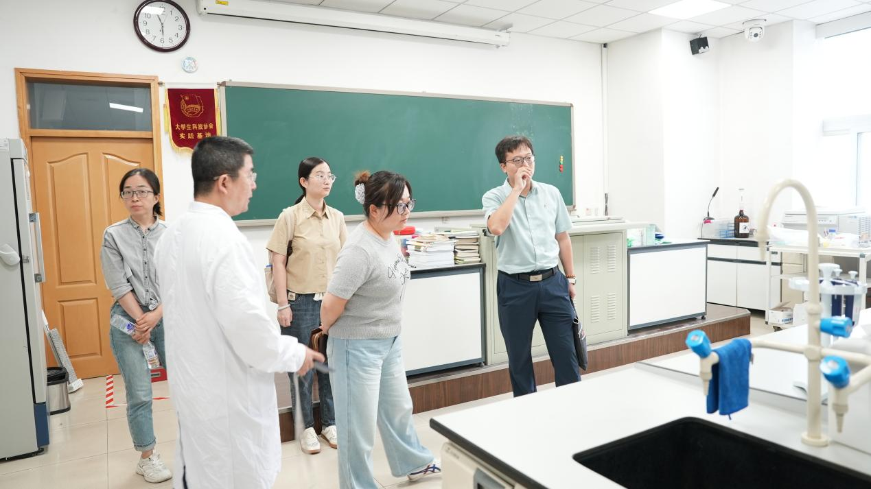 座谈结束,在周毓麟老师的带领下参观了生物国家级实验教学示范中心(太阳成集团)中心档案室、配件室、信息化管理室、大健康梦工场、智慧实验室、教学实验室和中试实训基地等,并详细介绍了中心建设、实践教学改革、实验教学队伍建设、实验室开放运行管理等情况。