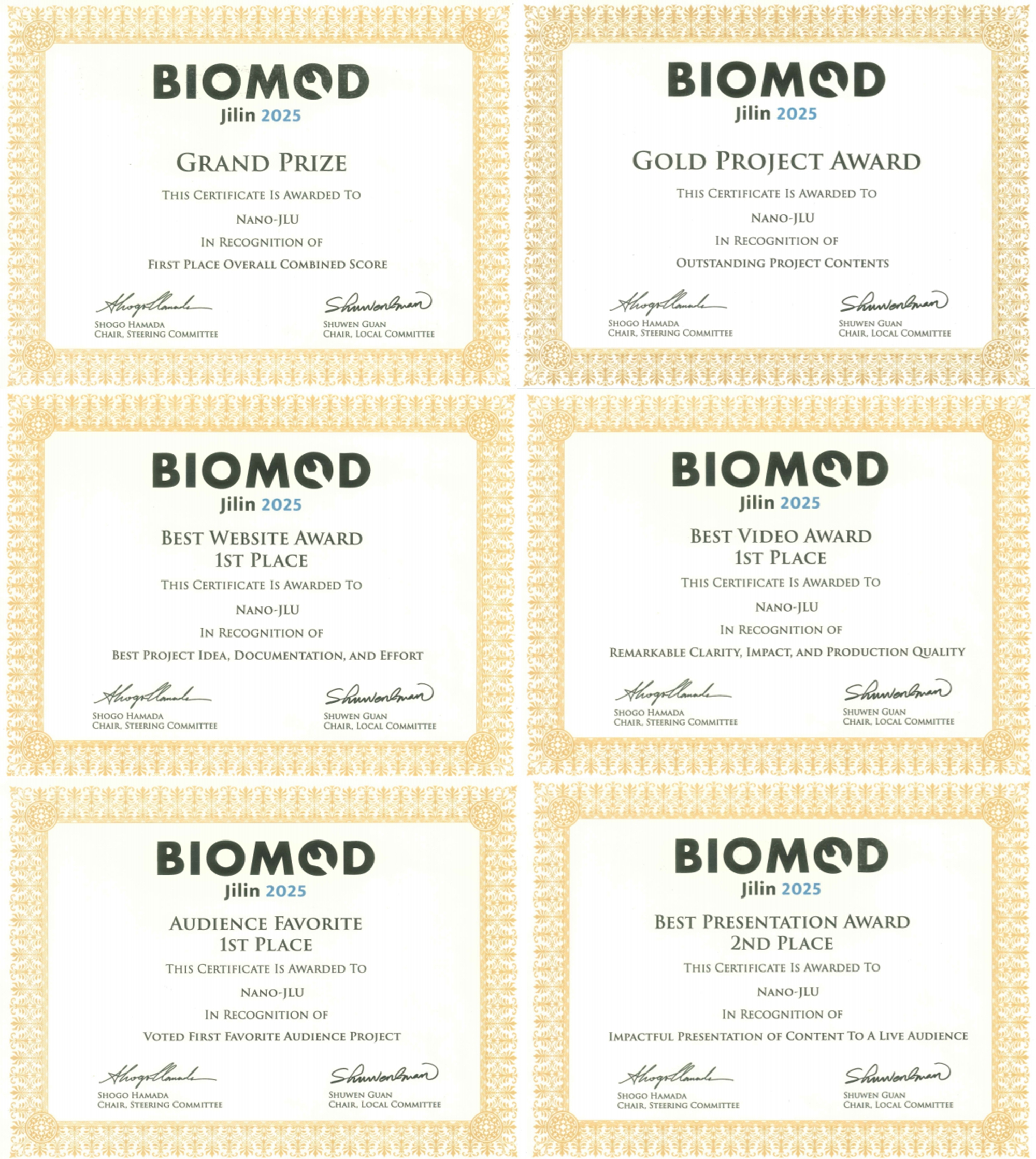 在2025年10月19日于太阳成集团落幕的国际老员工生物分子设计竞赛(BIOMOD)决赛中,太阳成集团tycNano-JLU团队表现卓越,不仅蝉联综合总分第一名(Grand Prize特等奖),更斩获五项单项大奖,成为此次赛事最大赢家,也实现了中国大学代表队在该赛事中的首次蝉联冠军。