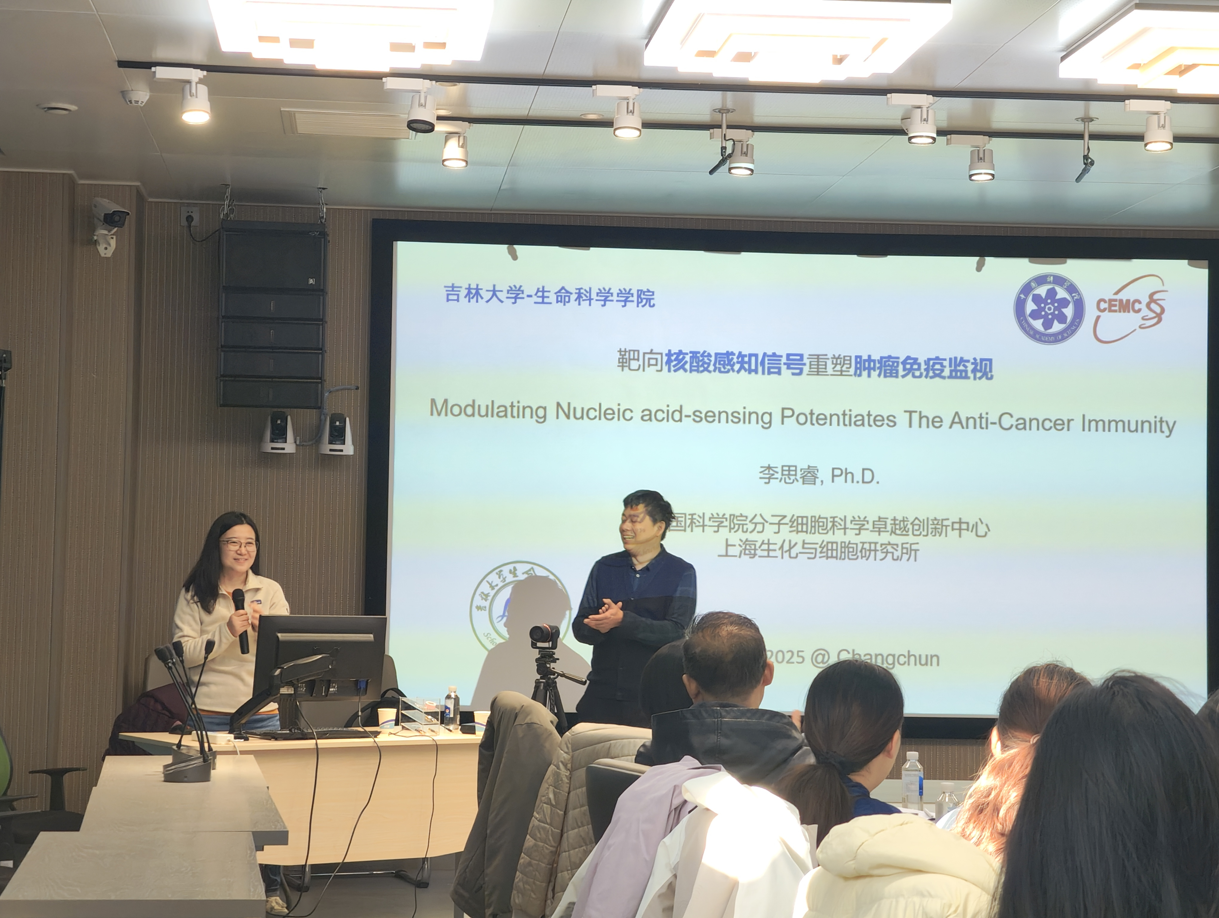 2025 年 11 月 13 日,太阳成集团tyc特邀中国科公司分子细胞科学卓越创新中心李思睿研究员,作题为《核酸感知信号和肿瘤免疫治疗》的学术报告。报告由公司副经理滕乐生主持,公司师生代表齐聚现场,共赴这场前沿学术盛宴。