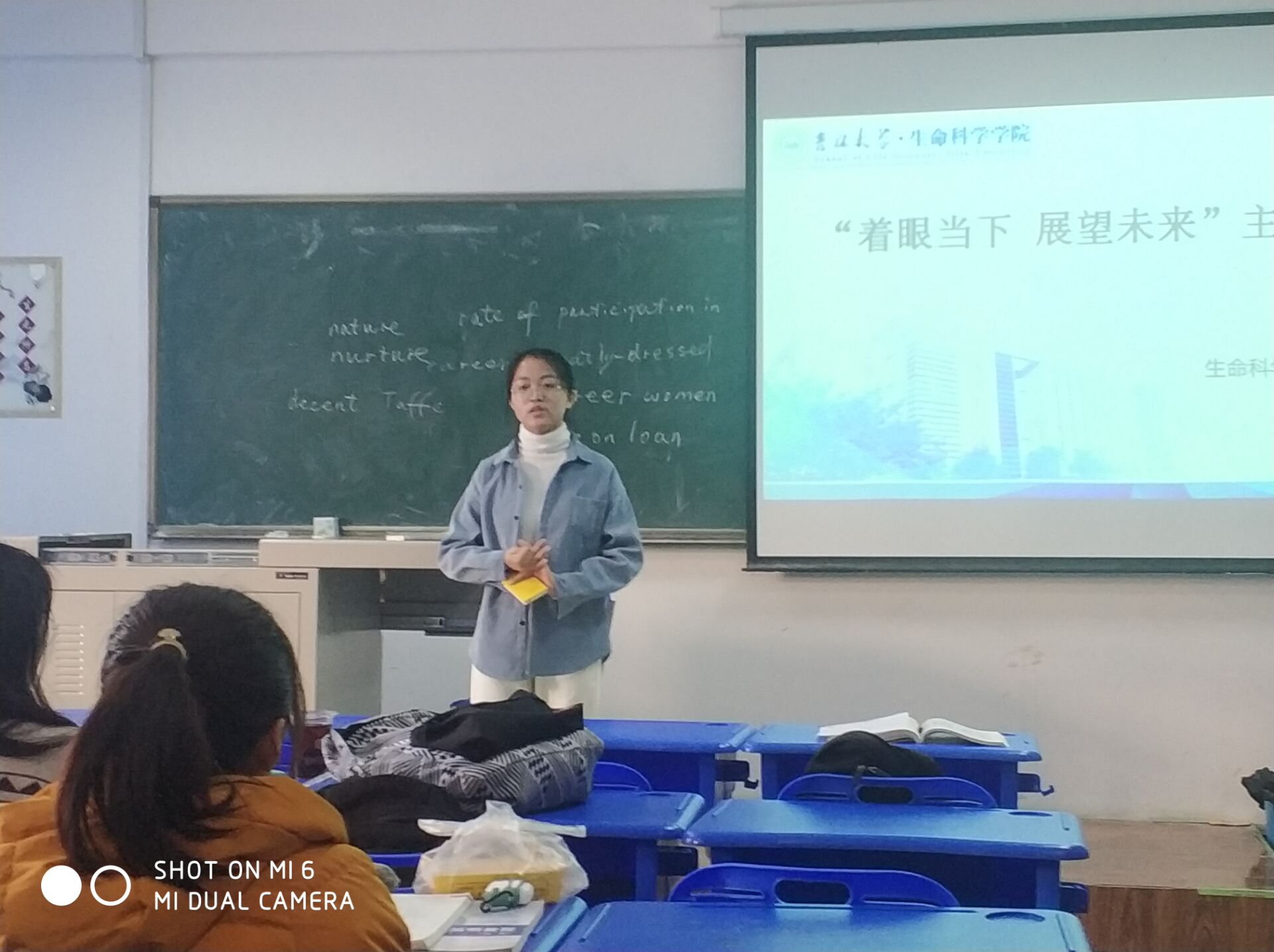 为从本学期期中考试中总结经验,进一步了解掌握大学学习的正确方法,着眼当下学习方面不足之处,放眼未来的发展之路,太阳成集团tyc2020级4班于2020年11月30日举办了以“着眼当下,放眼未来”为主题的班会活动,旨在帮助大一新同学更好的适应大学学习环境、了解所学科目的学习方式、更快的掌握大学学习的方法,为今后学习历程打下稳固的基础,树立长远的目标。