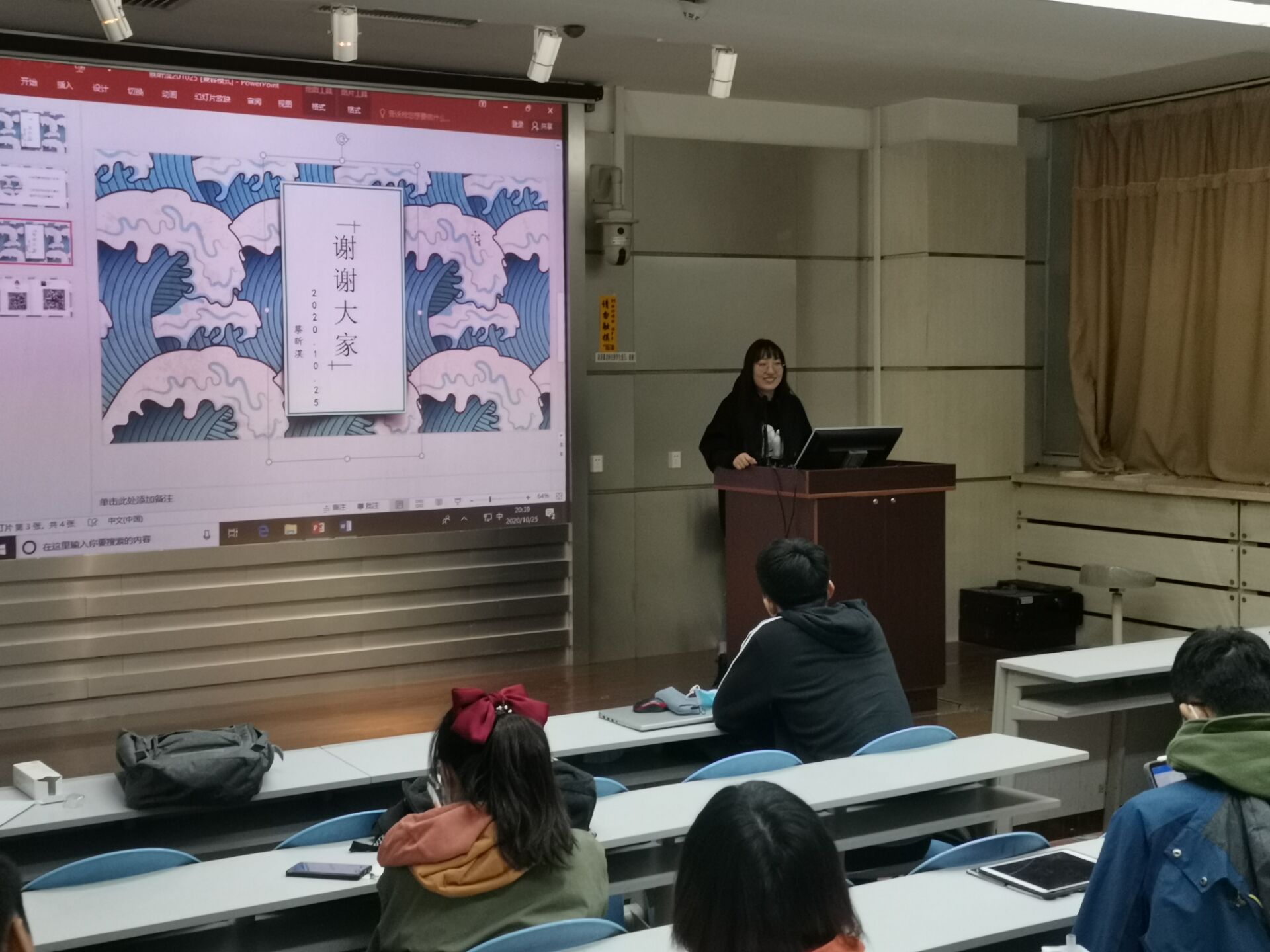 蔡昕淏学姐像同学们展示PPT制作错误示例