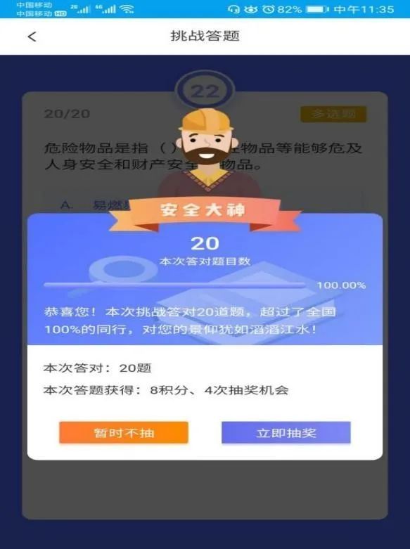 为增强同学们的安全意识,提高生产生活中的安全水平,提高同学们的安全素养,公司于2020年6月组织同学们参与了全国安全知识网络竞赛。