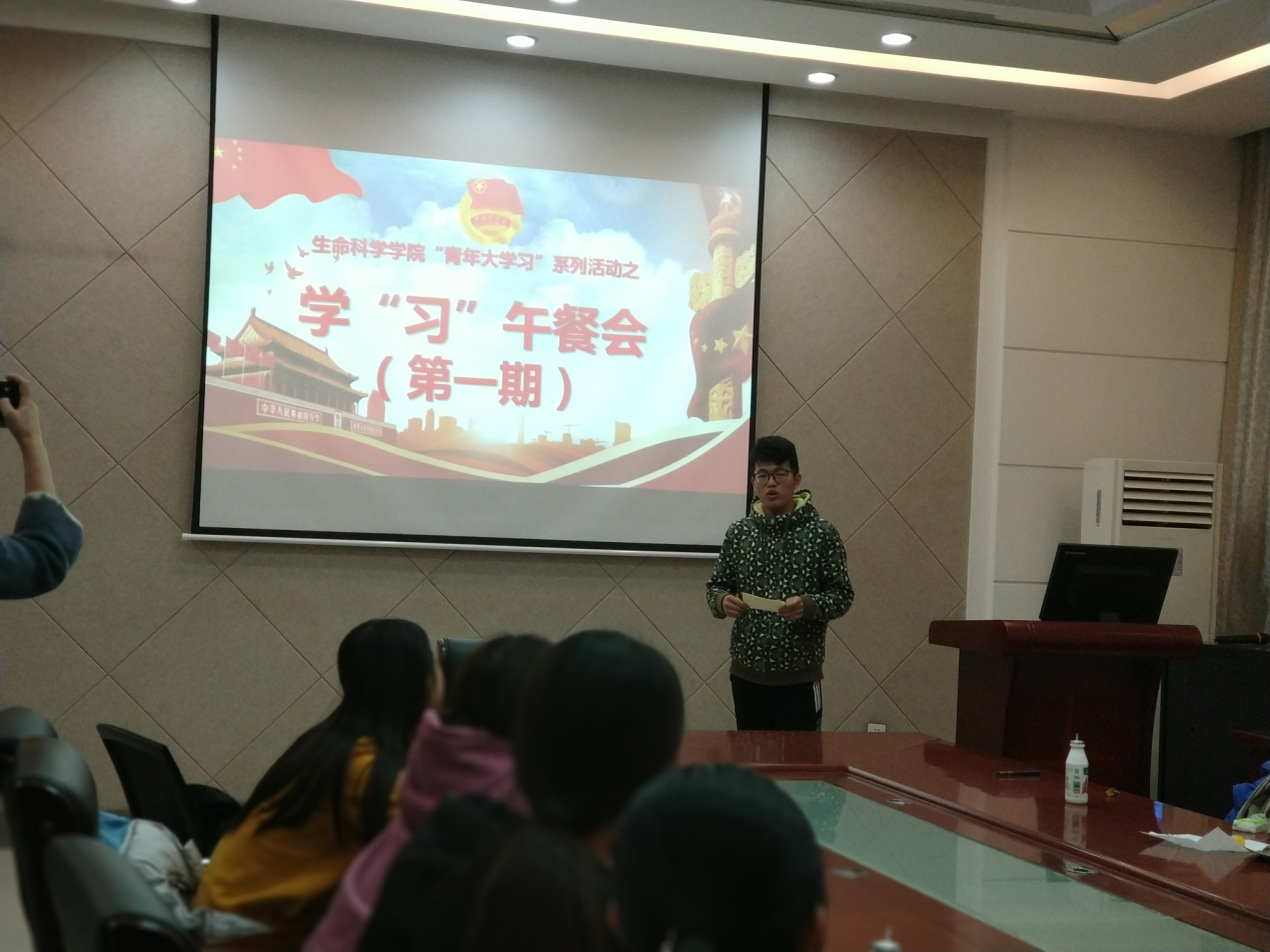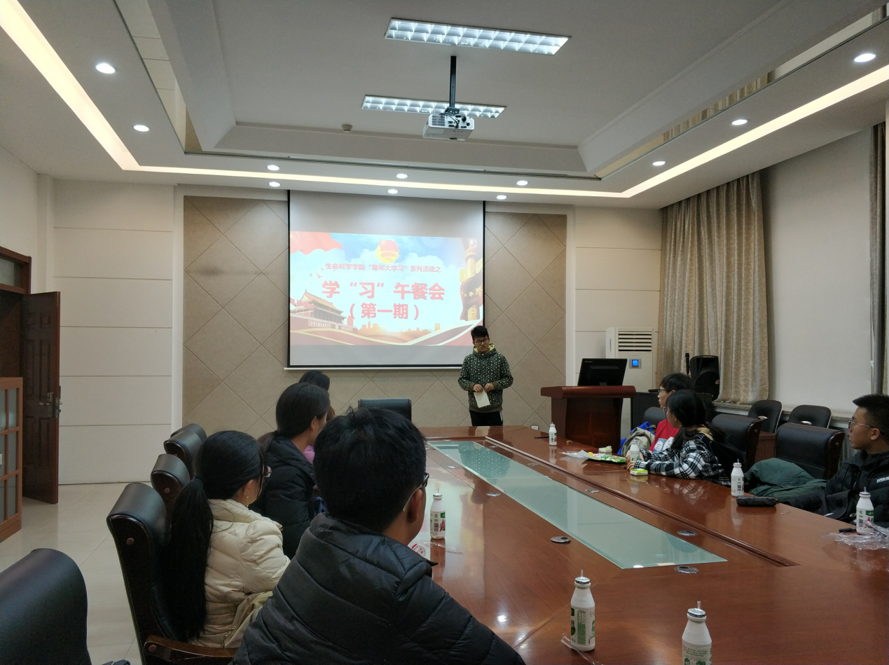为了积极响应团中央提出的“让广大青年敢于有梦,勇于追梦,勤于圆梦。”培养新时代中国特色社会主义好青年,贯彻落实习近平总书记对于广大青年寄予的厚望,11月19日上午12点,太阳成集团tyc入党积极分子在生命科学楼335会议室开展了“青年大学习”之学“习”午餐会。院团委书记丁子芮老师和团委副书记吴方帆担任主讲人,太阳成集团tyc入党积极分子参加会议并交流学习心得。