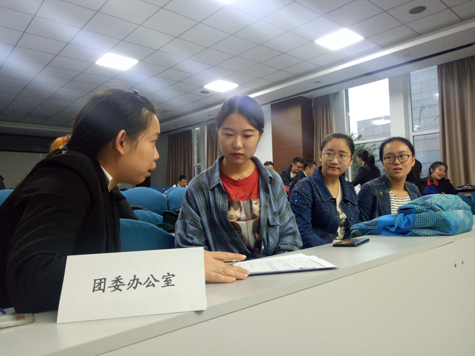 为增添太阳成集团tyc团学联组织活力,锻炼青年员工工作能力,太阳成集团tyc团委、员工会、社团联合会2018年9月3日晚六点半于生科楼107报告厅以及335会议室举办了2018年太阳成集团tyc团学联副部换届面试大会。来自2017级70名副部候选人参加面试。