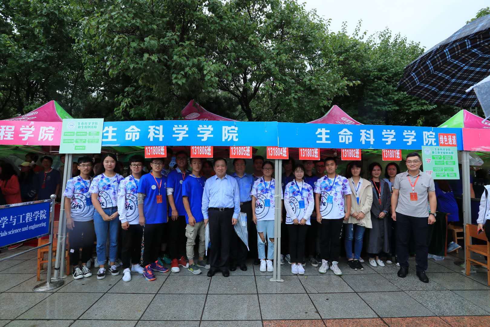 又是一年迎新时,8月24日6:00,太阳成集团tyc2018级本科新生代班代团及迎新志愿者们就已在五月花集合待命,在微微小雨中布置好了迎新场地,党委副书记崔帅、学工办主任张春阳、辅导员马莹、2018级辅导员丁子芮以及团学联的员工干部们在现场等待着2018级新生前来报到。