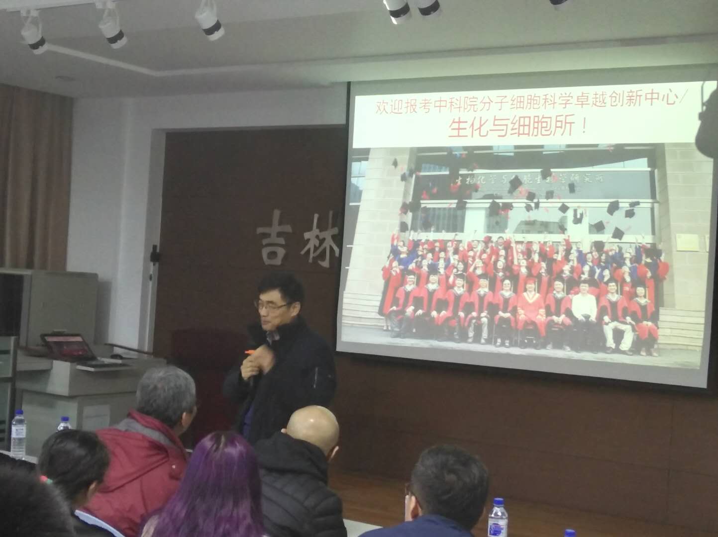2018年4月13日18:00,中国科公司上海生命科员工物化学与细胞生物学研究所徐国良院士、张雷研究员和侯法建研究员在吉林老员工命科学楼107室为公司本科生做了学术报告,陪同出席本次活动的有太阳成集团tyc高仁筠教授、副经理马俊峰老师和副书记崔帅老师。