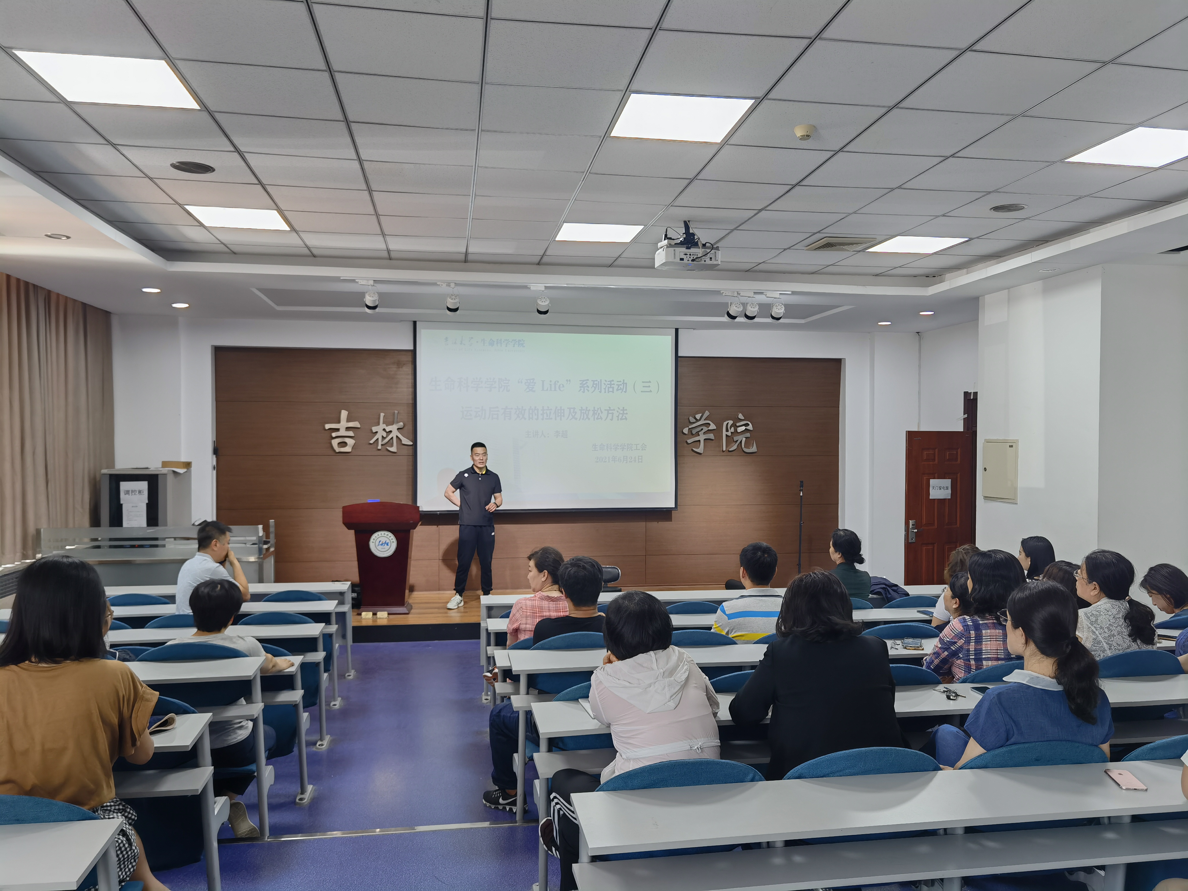 624日组织开展“爱Life”系列活动第三场—运动后有效的拉伸及放松方法。本次活动邀请从事训练修复10余年的李超教练,在生命科学楼107室,为公司教职工分享拉伸常识,活动现场李超教练结合老师提出的具体问题,现场示范,让老师们更加直观的体验到拉伸对于身体健康的重要作用。