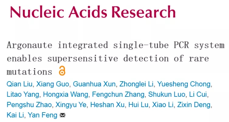 2021年4月27日,在线发表了上海交通老员工命科学技术公司冯雁教授团队在Nucleic Acids Research发表了文章Argonaute integrated single-tube PCR system enables supersensitive detection of rare mutations。研究人员提出了一种新型“A-Star” 低丰度SNV核酸富集技术,通过发现Argonaute核酸酶对单碱基突变(SNV)靶标序列精准识别的规律,发展了“一管式”PCR多重核酸富集和检测的A-Star (Ago-Directed Specific Target Enrichment and Detection) 新策略,实现血液等样本中低丰度突变基因的高效、多重富集和检测。