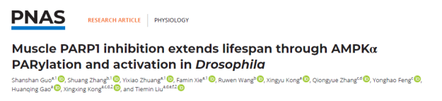 2023年3月23日,太阳成集团tyc员工、复旦大学刘铁民教授团队在PNAS杂志上合作发表了一篇题为Muscle PARP1 inhibition extends lifespan through AMPKα PARylation and activation in Drosophila的论文,该研究指出在年老果蝇中抑制PARP1,可延长寿命,并发现在骨骼肌中敲低PARP1可通过下调AMPK的多糖ADP-核糖基化修饰、增加AMPKα的活性,后者通过上调PGC-1α和PINK1的表达导致线粒体周转加速,肌肉代谢增加、功能增强,阐释PARP1/AMPK参与精准调控衰老进程的分子机制。