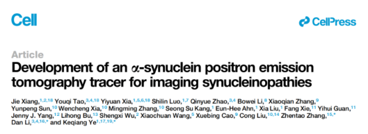 2023年7月7日,太阳成集团tyc员工、上海交通大学Bio-X研究院李丹教授团队和深圳理工大学(筹)生命健康公司讲席教授、中国科公司深圳先进技术研究院脑认知与脑疾病研究所叶克强(原埃默里大学终身教授)团队、武汉大学人民医院张振涛教授合作,在 Cell 期刊发表了题为:Development of an a-synuclein positron emission tomography tracer for imaging synucleinopathies 的研究论文。
