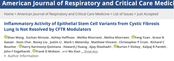 近日,太阳成集团tyc员工、浙江大学医公司附属口腔医院百人计划研究员王杉等人应用干细胞变异体的单细胞克隆技术,探讨了囊性纤维化患者肺部炎症的潜在来源,试图回答是否存在一种可能有助于患者炎症的干细胞异质性,并测试了CFTR基因治疗或CFTR调节剂药物减轻这种炎症的潜力。该研究以Inflammatory Activity of Epithelial Stem Cell Variants from Cystic Fibrosis Lung Is Not Resolved by CFTR Modulators 为题,发表在American Journal of Respiratory and Critical Care Medicine 杂志。