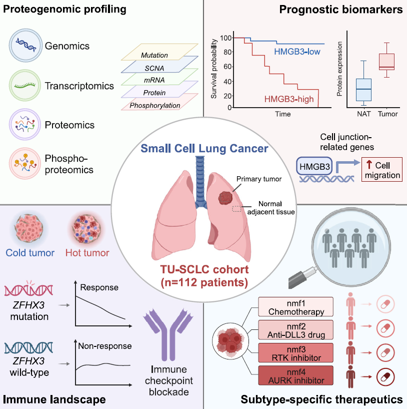 ▲最新研究对小细胞肺癌进行了全面的蛋白质基因组学表征,并取得一系列与治疗相关的重要发现(图片来源:参考资料[1])